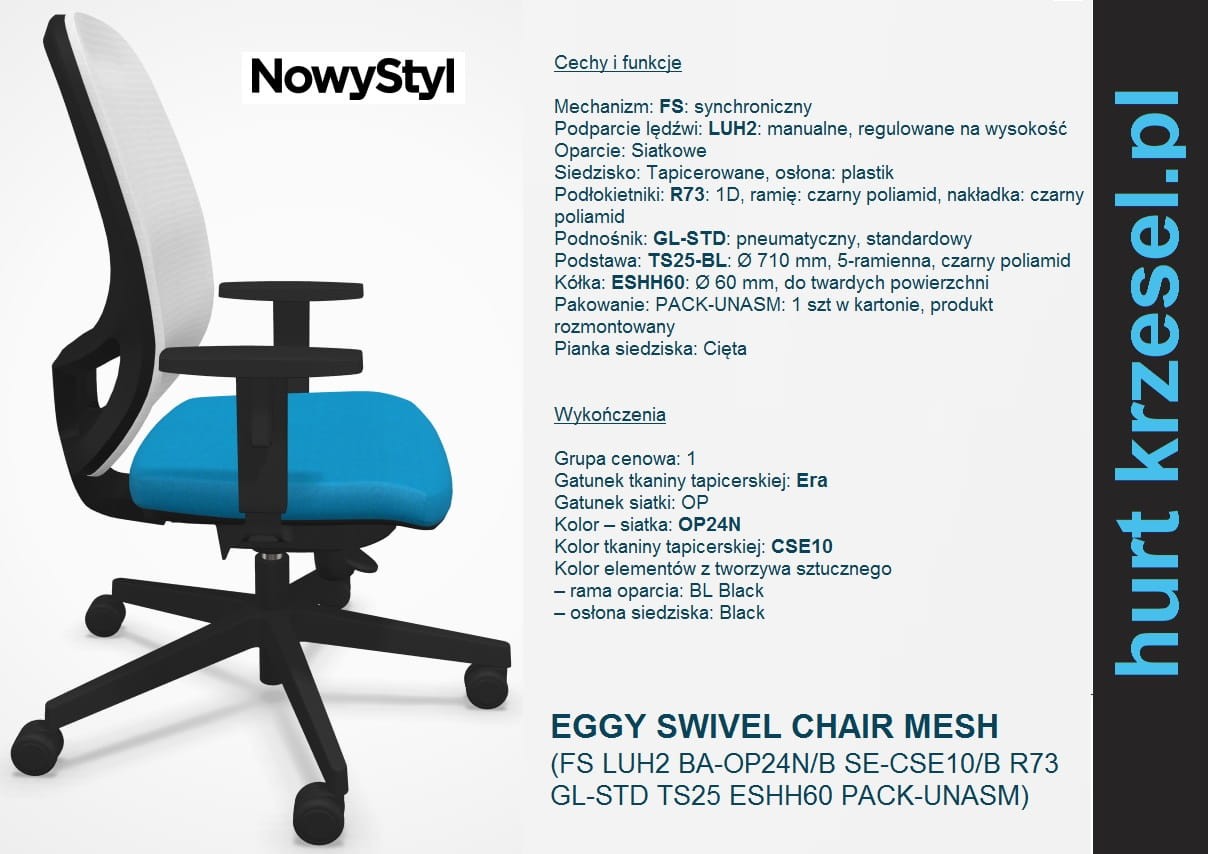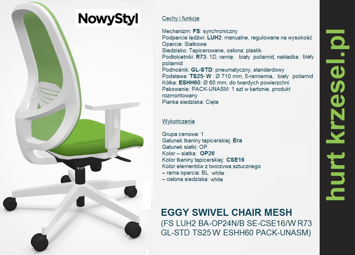 EGGY , Nowy Styl siatkowe krzesło biurowe, mechanizm synchroniczny C10
