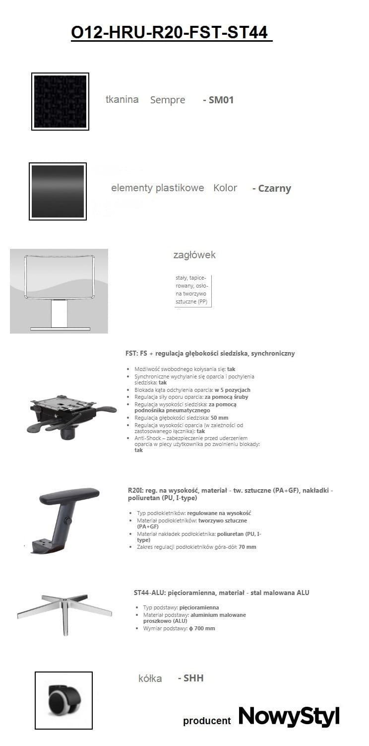 Fotel do pracy przy komputerze INTRATA O12, home office powyżej 4H, regulacje-max, ergonomia, doradztwo st44 fst hrua C10 (konfigurowalny) krzesło spełnia MPIPS