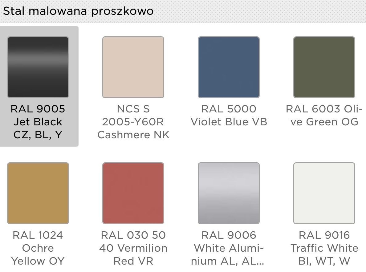 Cztery metalowe nogi zapewniają solidność i trwałość konstrukcji, malowane proszkowo - 8 kolorów do wyboru.