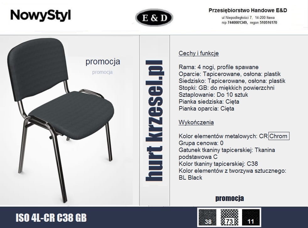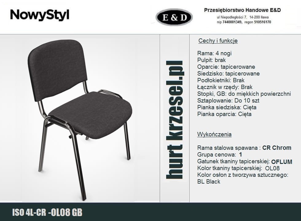 Krzesło ISO wygodne, mocne, atest Ergo. Nowy Styl, chrom C10
