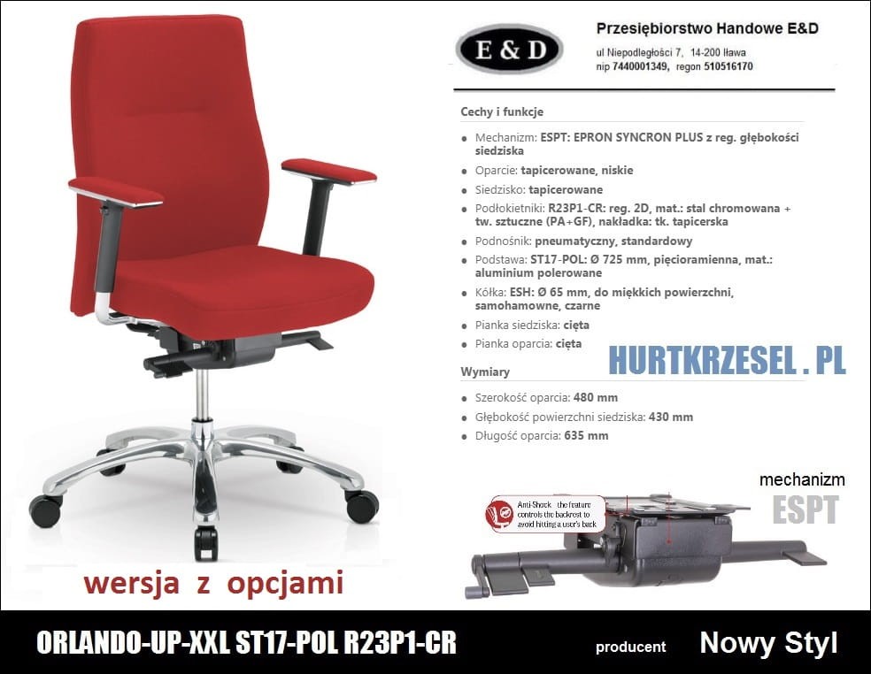 Krzesło ORLANDO UP XXL R23P1 ST17pol z mechanizmem synchro. ESPT z reg.gł.siedziska