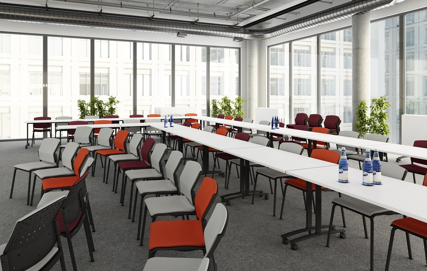 Dużą zaletą modelu jest możliwość sztaplowania do 6 sztuk, co znacząco ułatwia przechowywanie oraz organizację przestrzeni w salach szkoleniowych i konferencyjnych.