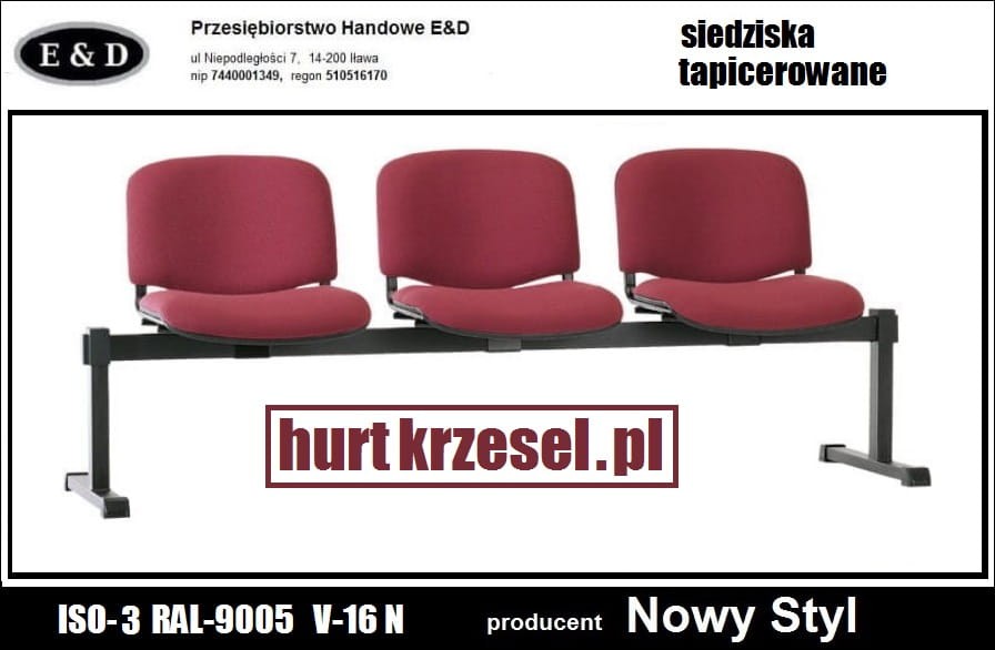 Ławka do poczekalni ISO-3 osoby, praktyczna niedroga, atest, Nowy Styl bl ix C10