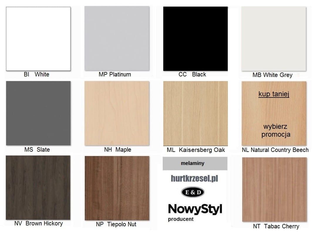 - Blat pokryty melaminą imitującą strukturę drewna.